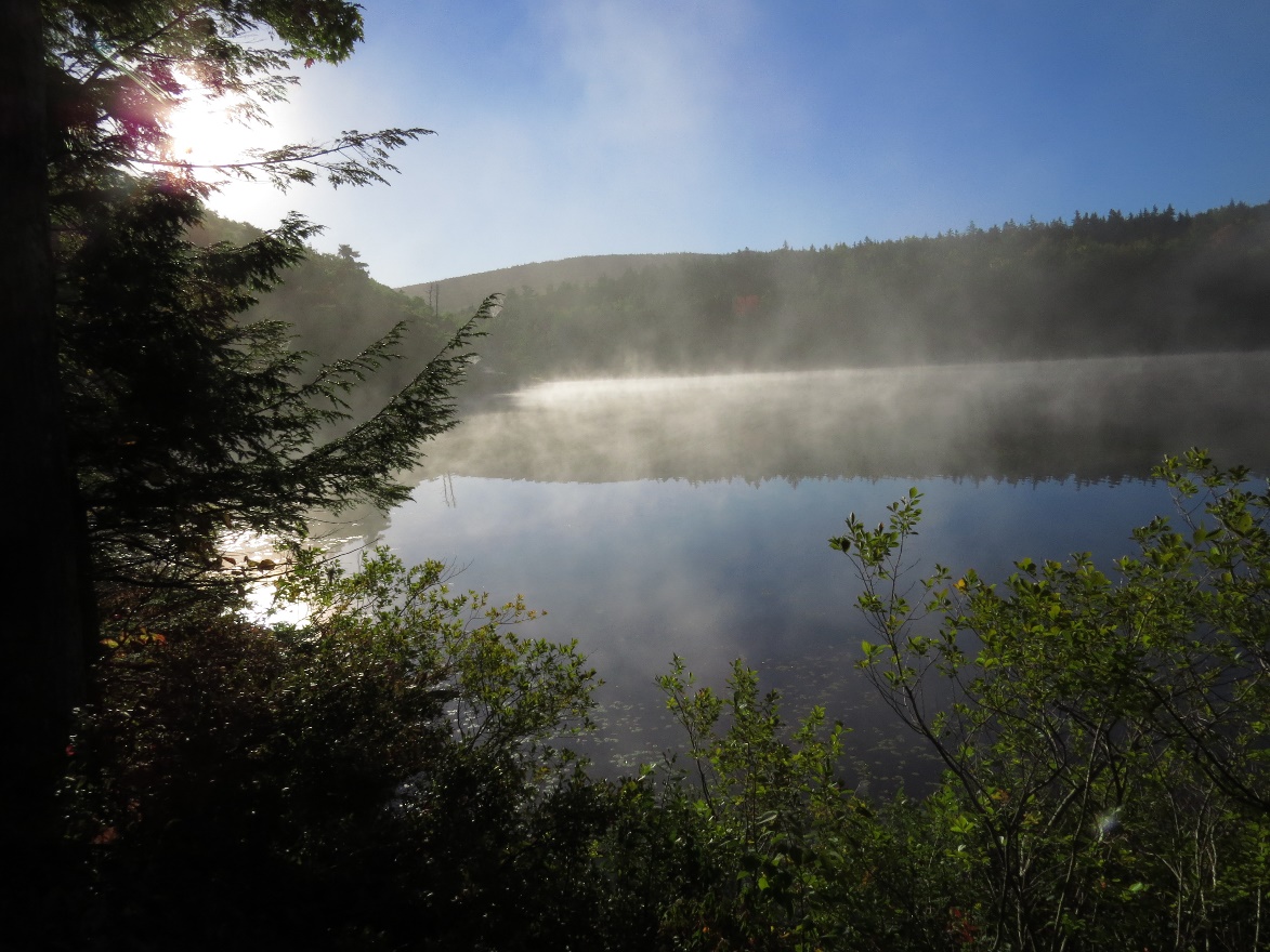 Mists over Lake Jordan surface, Acadia National Park, Maine
