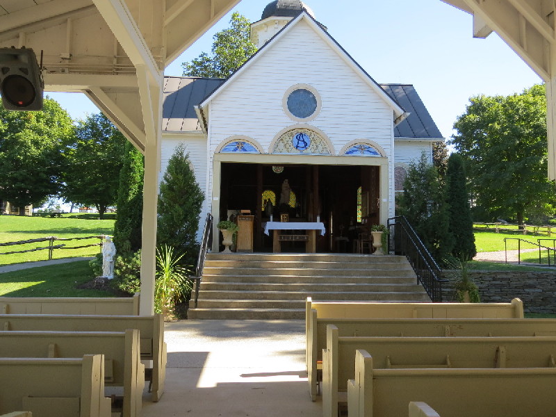 According to the plaque shown above, the shrine was established as a memorial to the victory over the Mohawks. Somehow I imagined that by now people would feel remorse about the overall treatment of the native tribes, and will refrain from celebrating an asymmetrical victory. Clearly, I was wrong. Notwithstanding, the buildings and grounds were beautiful, the church elegant, the location inspiring.