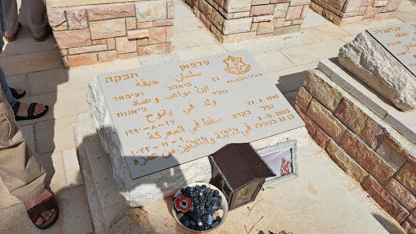 Tombstone for Lt. colonel, Salman Habaka, 33, commander of battalion 53, Barak formation. Died November 2nd, 2023 in north Gaza Strip.