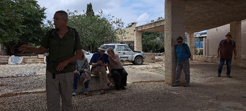 On the left: The group listens to Nir Keinan’s narration about Druze participation in the Israeli wars.