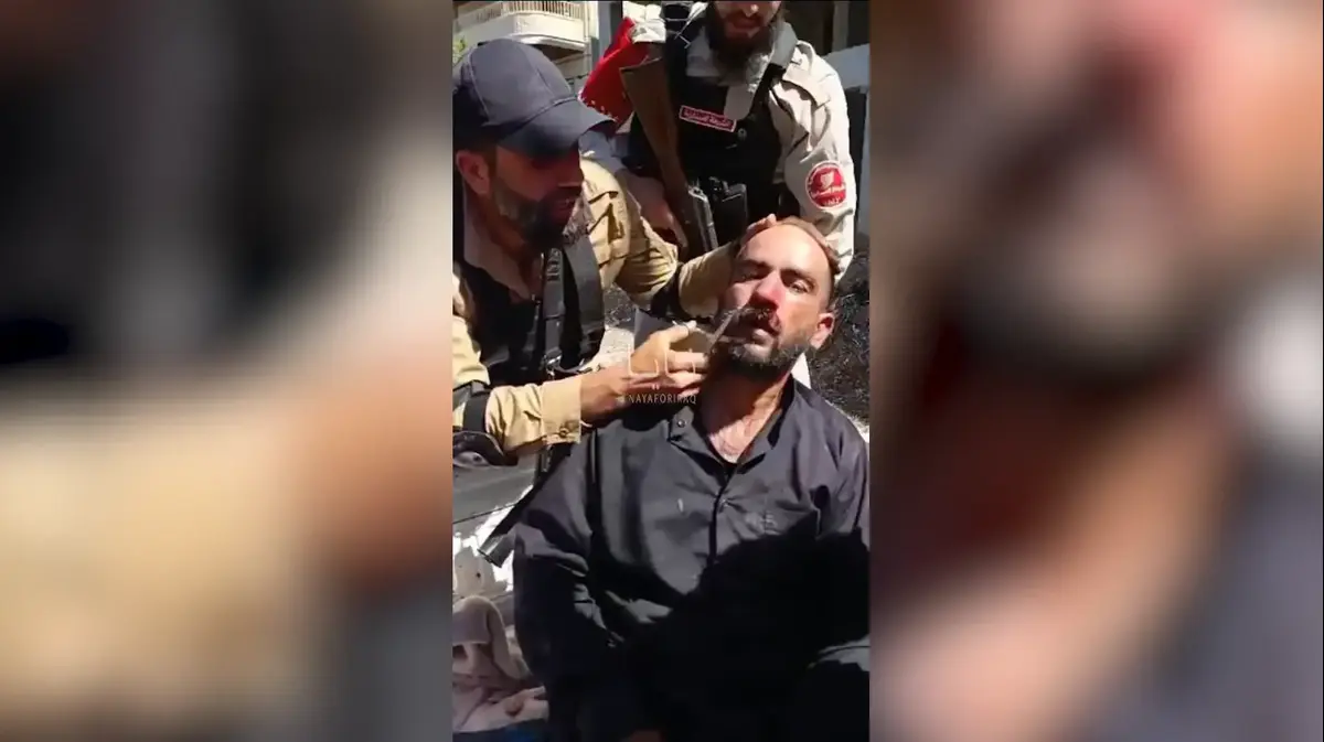 Shaving mustaches in middle street as an act to humiliate Druze. Sweida, Syria. Source ; Walla
