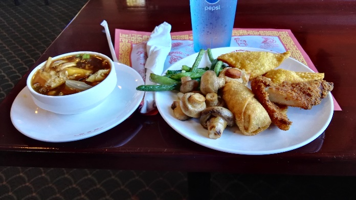 By this time I was voraciously hungry. I remembered the waiter’s recommendation of the Asian Buffet near Saranac and put it on the GPS. He said it was “up here”, so I wrongly assumed he meant up the road in town, but apparently “up here” is a relative term… In reality it was an 8-mile drive, but wow, indeed!!! Unbelievable quantities of excellent food. This place had it all, and in abundance: Chinese entrees, Japanese sushi, American classics, seafood, meats and chicken dishes, salad bar, vegetable dishes, soups, fruit, desserts, you name it.