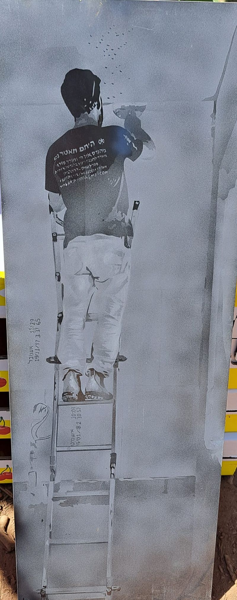 Left: Artist brought his creation to the cherry picking event at Mas’adeh. His pictures show daily workers in the style of Druze heroic figures